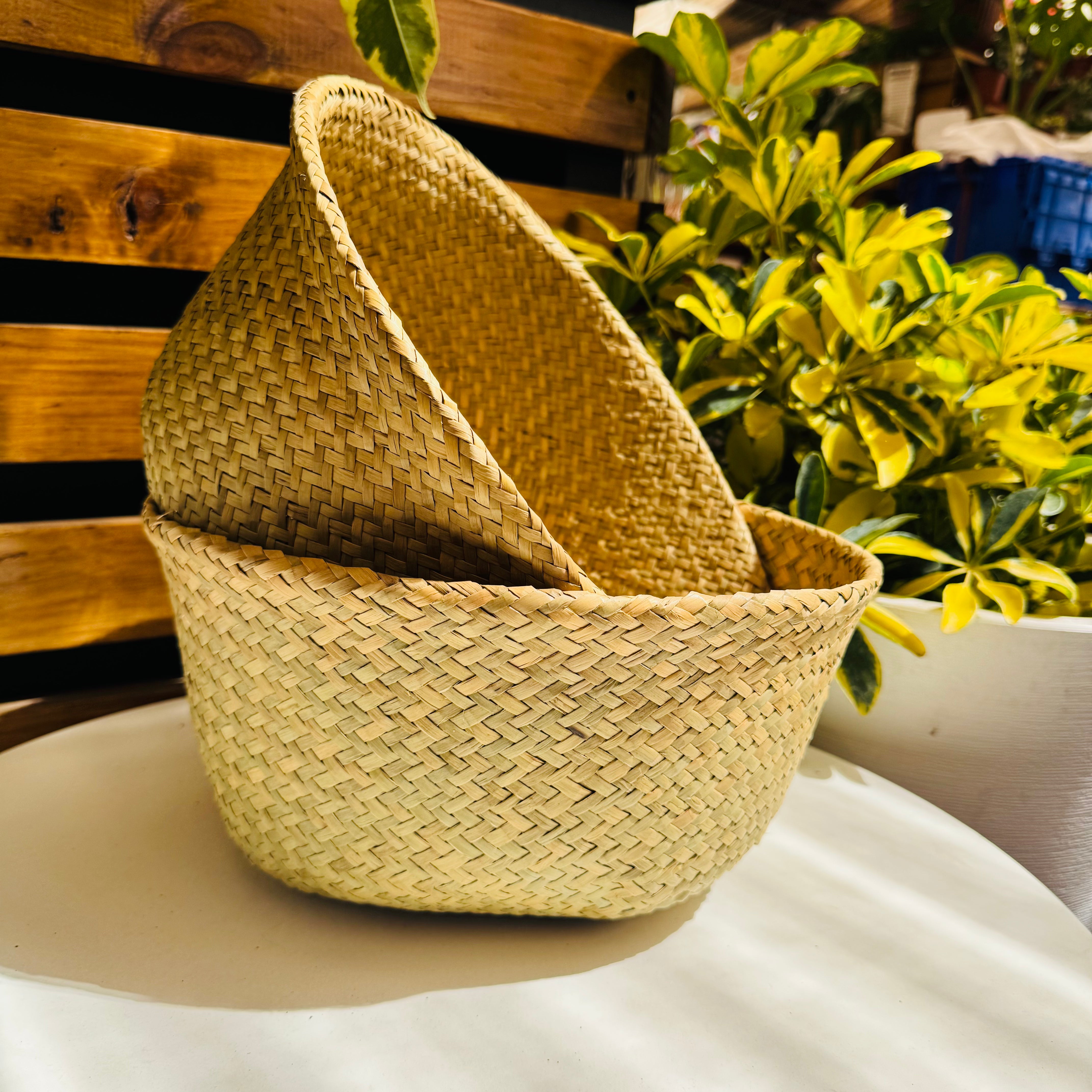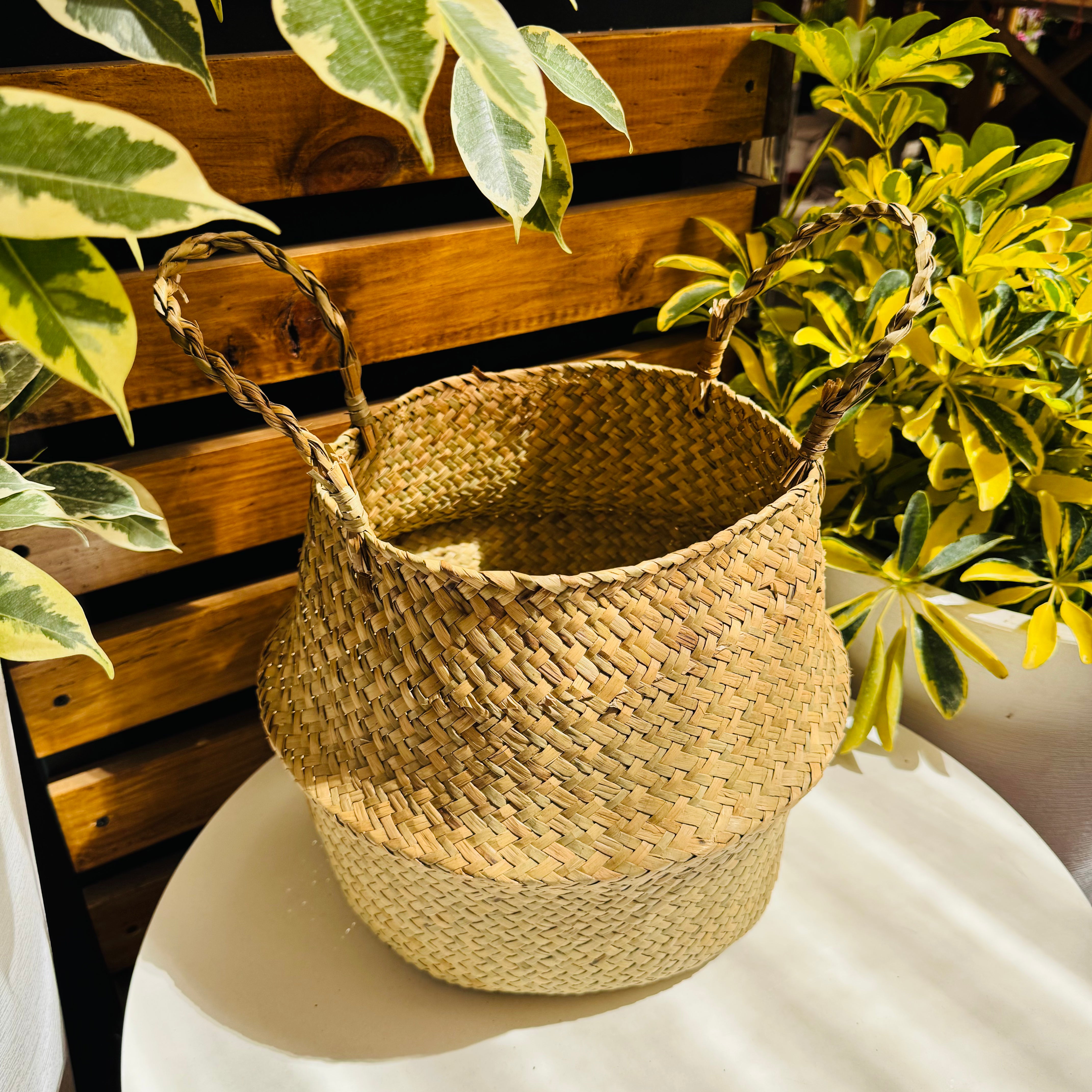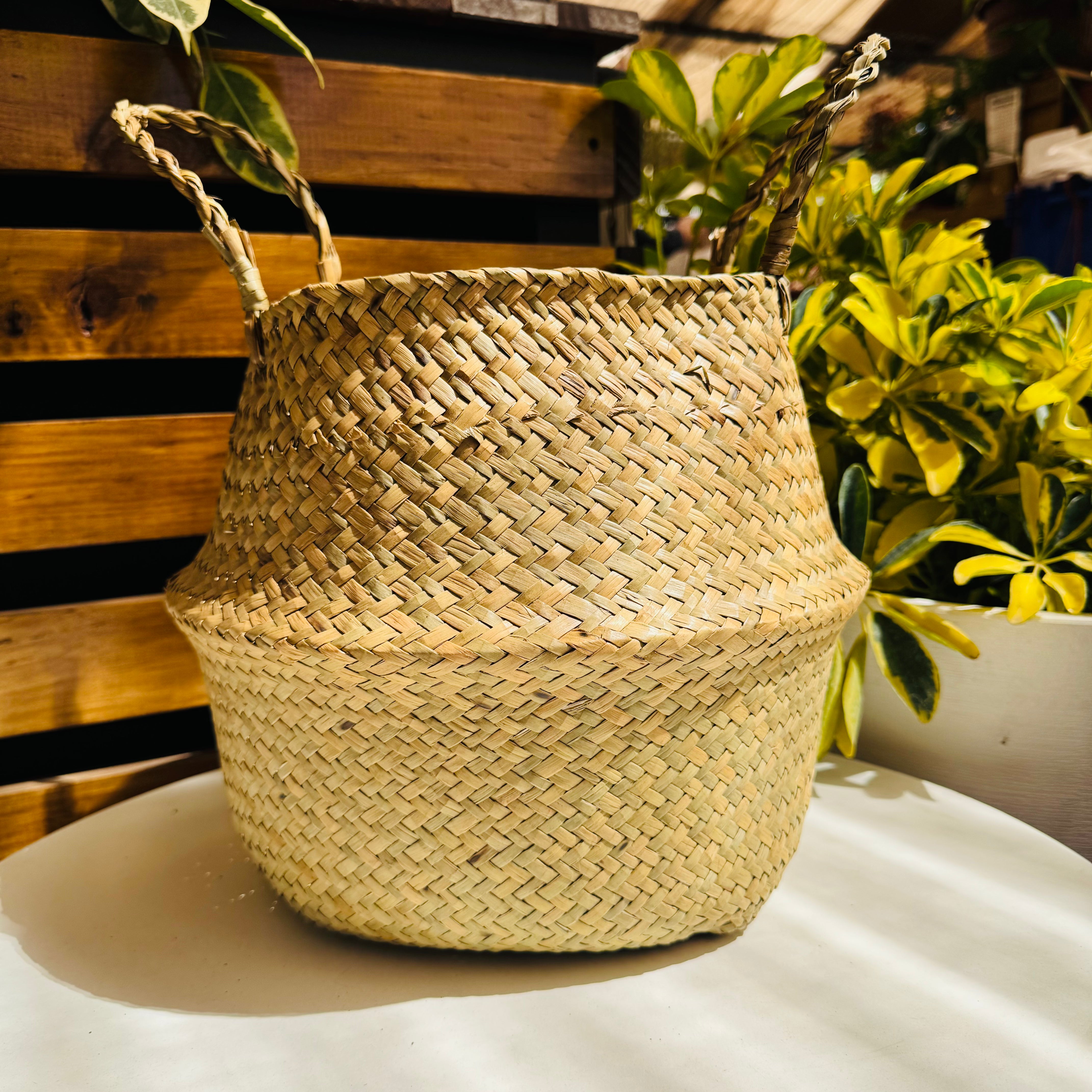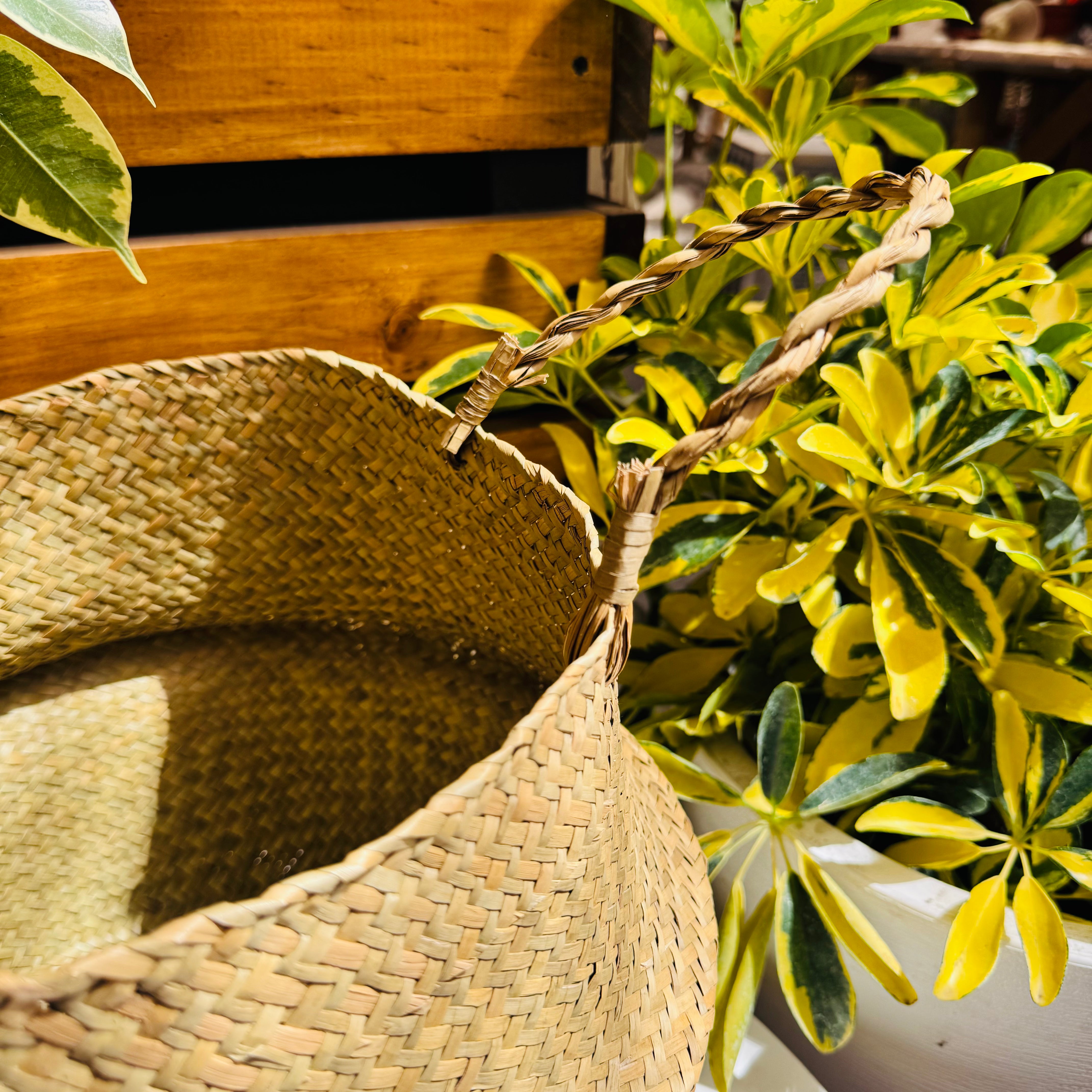 Canasto decorativo hecho con fibras naturales que aportan calidez y un estilo acogedor a cualquier espacio. Incluye asas laterales que permiten mover tus plantas fácilmente de un lugar a otro, combinando funcionalidad y diseño. Ideal para cubrir macetas y realzar la belleza de tus plantas en interiores.