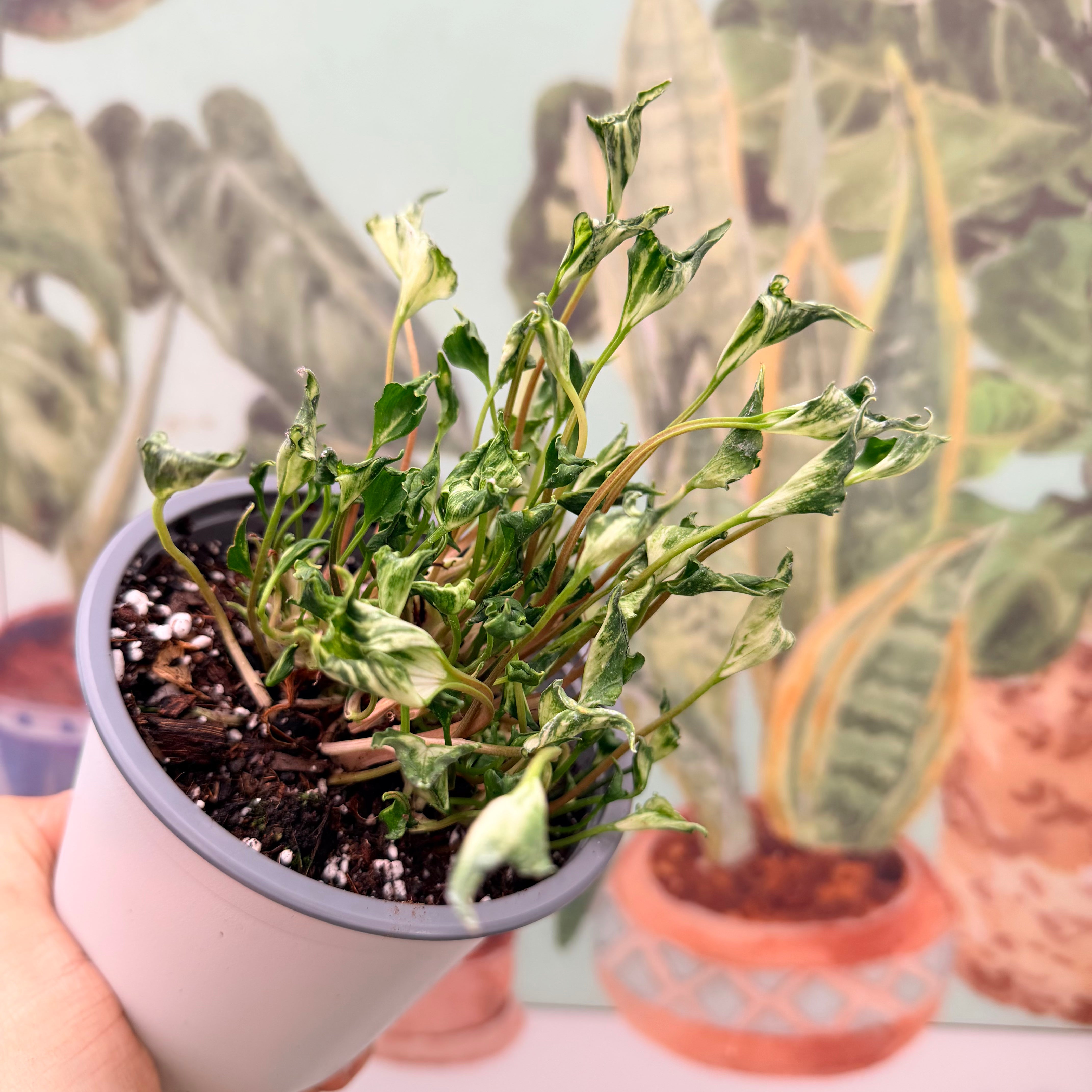 Luz: disfruta de bastante luz natural. Se recomienda el sol directo de las primeras horas de la mañana, o fin de la tarde. Si las hojas pierden sus tonos blancos es por falta de luz.