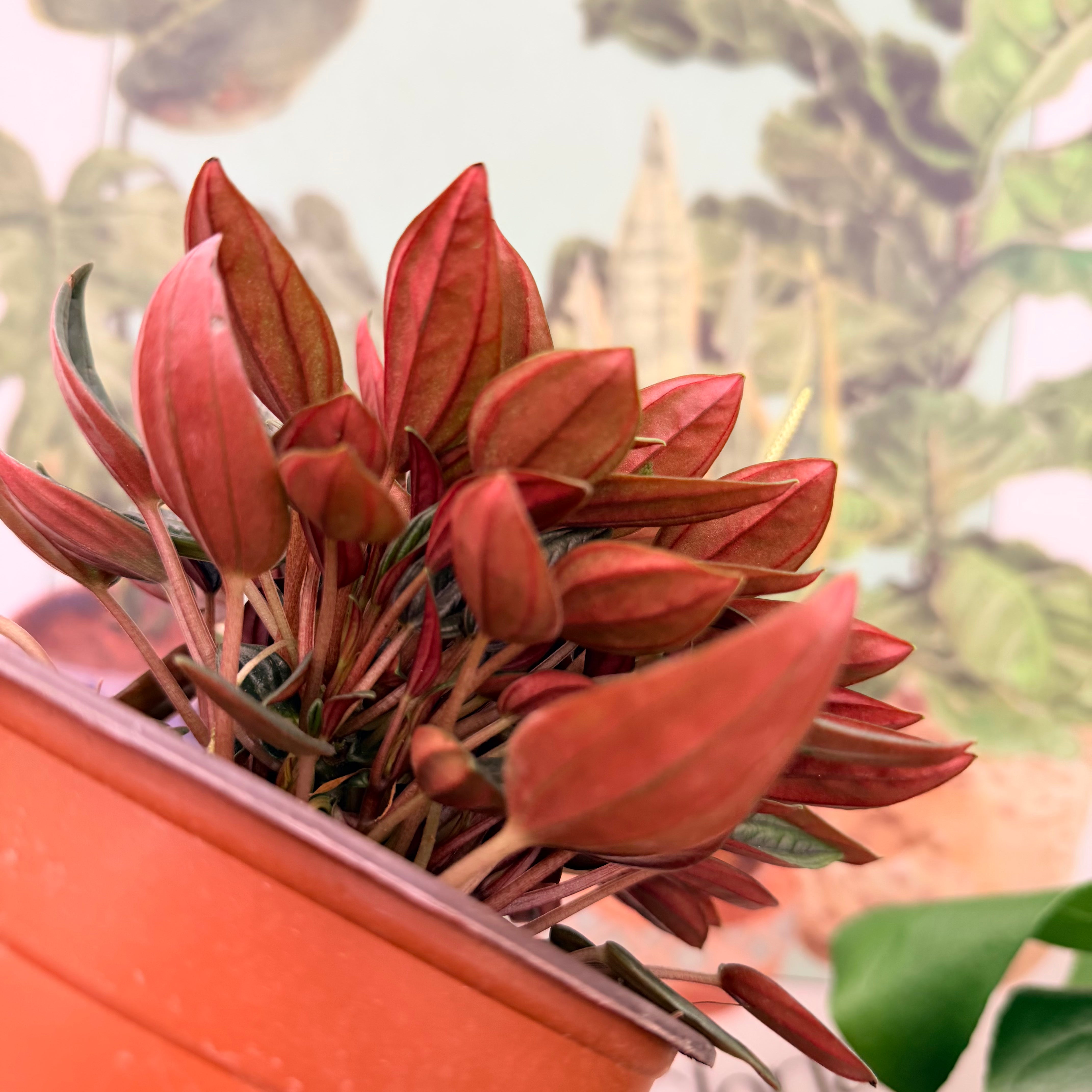 La Peperomia Rosso Red es una plantita preciosa y muy ornamental. Destaca por sus hojas alargadas, brillantes y con un reverso rojo intenso que se roba todas las miradas. De porte compacto y súper decorativa, es ideal para escritorios, repisas, mesas de centro o cualquier rincón donde quieras agregar un toque elegante sin ocupar mucho espacio.